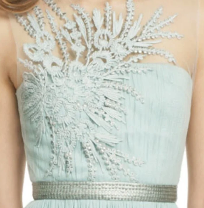My friend and I spent the evening walking through the crowds at the James Beard Foundation Awards, scouting out the best dressed attendees. A gate and approximately 10 guards separated us from one too many glamorous event-goers, but we managed to snag a photo of two impeccably dressed women. The seafoam tulle dress pictured above is to die for. The detailing is exquisite and the woman wearing it pretty much owned Lincoln Center tonight.