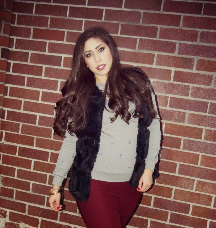 The fur vest is probably the equivalent of a jean or leather jacket. It is a closet staple. It is the piece you throw on at the end of an outfit when you realise your attire hasn't calculated in the 40 degree windchill. Or it's the piece you use to tie your outfit together or even build your outfit around. I honestly don't remember which way it went the day I shot these photos of my gorgeous friend Liza, but I blame my memory shortage on the fact that I could barely feel my fingers as these were taken in the dead of winter.
