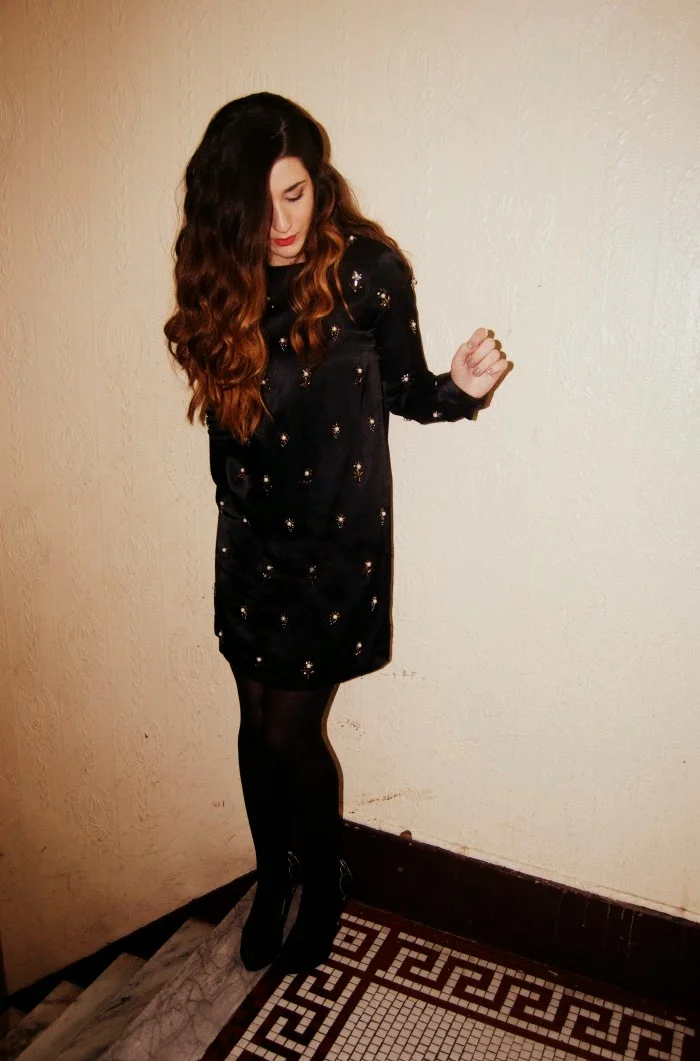 Apr 27 Apr 27 Black Beaded Dress and Ring Overload Esther Santer OUTFIT BREAKDOWN:Black beaded dress: ZaraGold rings: H&MBlack Heels: ZaraPhoto Credit: Joanna Ross-Tachxx Esther Leave a comment